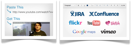 Imagine you just copy and paste the URL of a Confluence page to another page and what you get is a Confluence-Link – no more broken links to Confluence content! That sounds really good to me, thinking about the lots of links in our documentation. This works as well with Jira issues, Flickr photos, YouTube and Vimeo videos, Google Maps and screenshots taken using Skitch.
