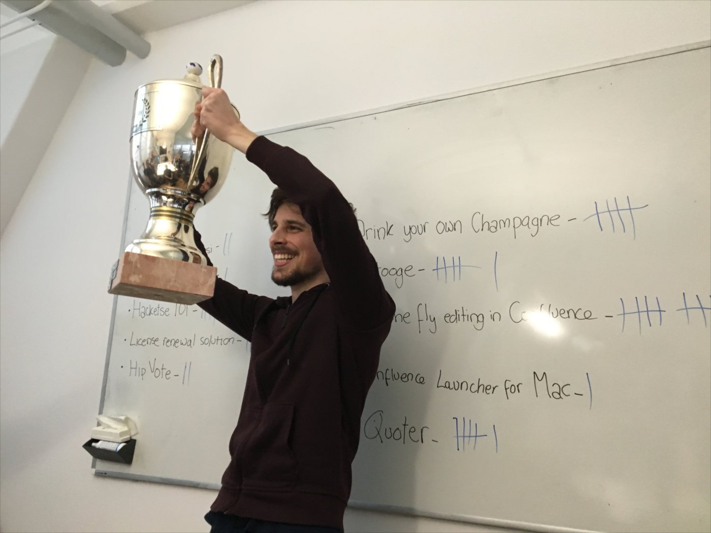 With just 24 hours to turn an idea into reality, there’s never a moment to lose. And when the time is up, everyone gathers together to take turns showing off their results. The cutoff point is unforgiving – if you're not in, you're out. Every submission was impressive and creative, and with so many great projects, it was anyone’s guess who would win. When we tallied up the votes, a handful of projects were neck-and-neck until the very end. Peter emerged victorious for the second time – in fact, he’s been on the podium every single Hacketse since he joined K15t in 2013. This time, he took first place with an on-the-fly popup editor for Confluence. Congratulations on your second Hacketse win, Peter!