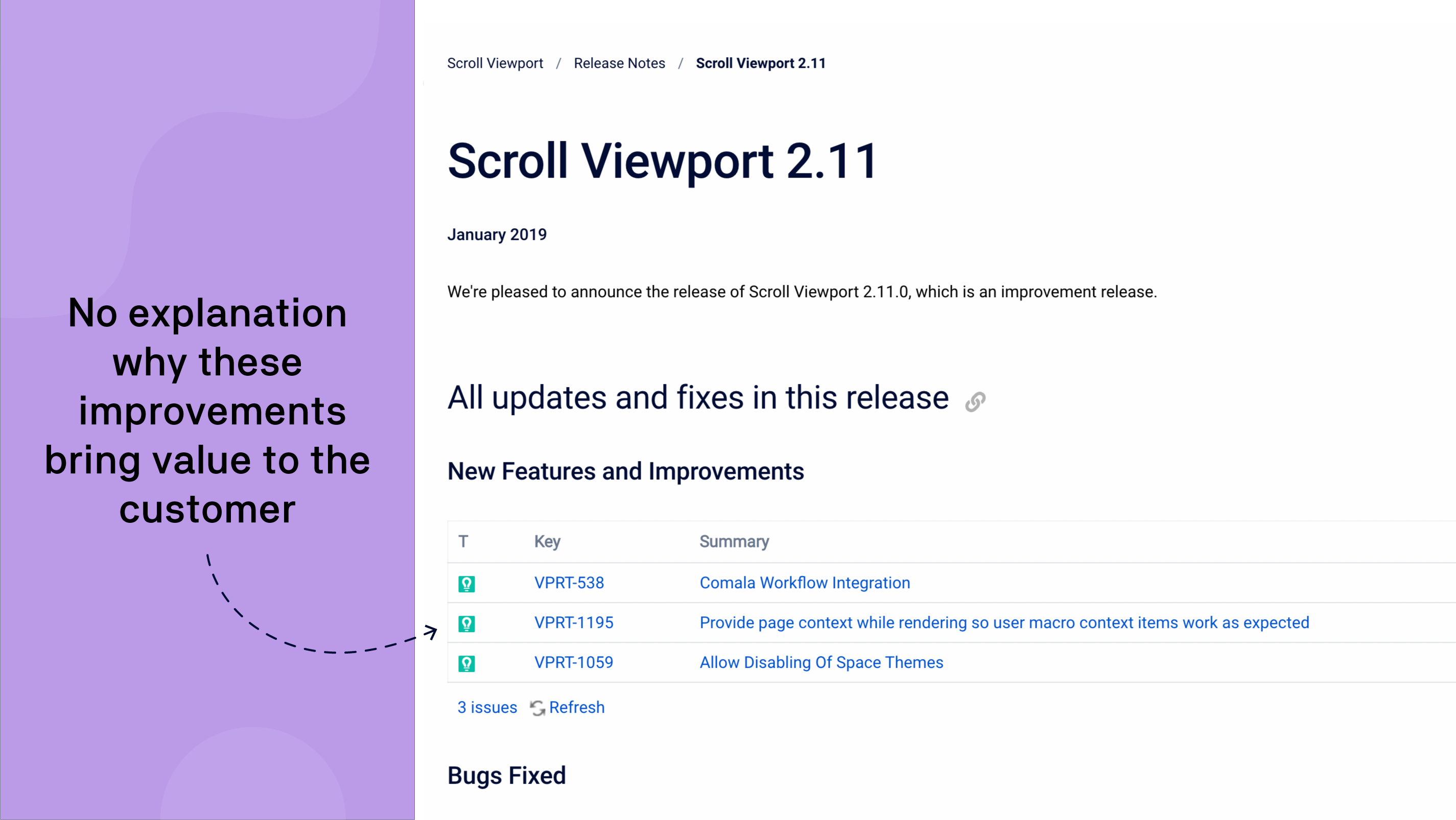 The release notes are too technical: If you’re using release notes as a technical thread of information, your actual end-users don’t have a chance to understand what a new feature or improvement means to them. If you have a technical audience because your product is very technical this might be totally fine.