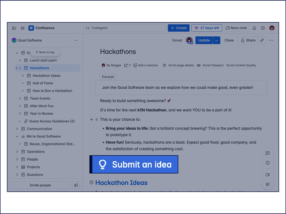 Standardize your team’s content creation with Create from Template Pro. Define a parent page to file new pages under, add variables to page titles for consistent naming, and add labels to pages.